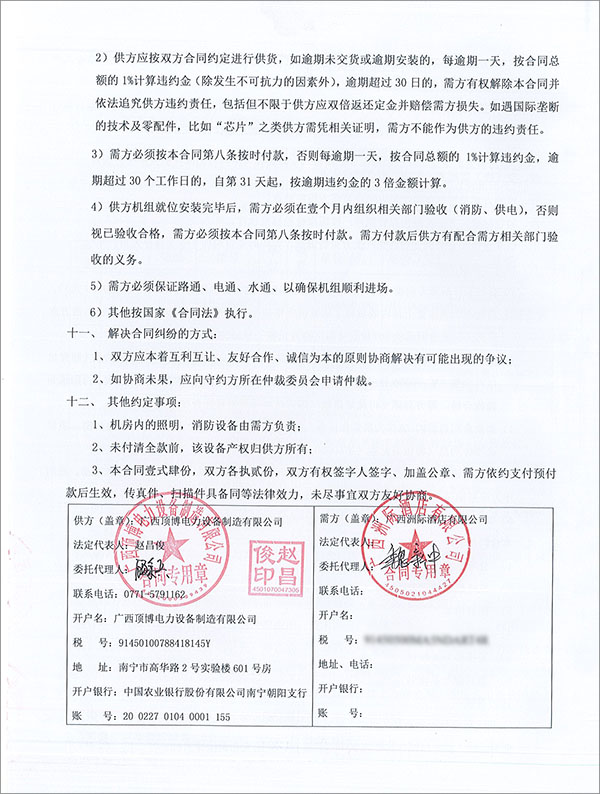 祝賀頂博電力與廣西洲際酒店有限公司成功簽訂2臺800KW玉柴柴油發(fā)電機組