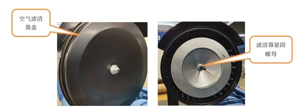 2)從空濾器本體上拆下空氣濾清器主濾芯(安全濾芯禁止用壓縮空氣吹或用油、水清洗),并檢查密封膠圈是否有損壞、變形情況;